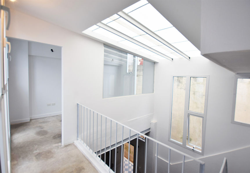 D2127-D recompone un ph interno haciéndolo crecer hacia arriba. Un nuevo volumen liviano se erige sobre la edificación existente permitiendo mayor entrada de luz y más superficie de uso, utilizando el sistema de construcción en seco de tipo steel-framing.